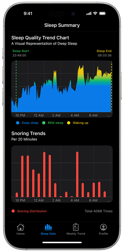 Accurately records your sleep duration, stage changes, and interruptions throughout the night to help you understand your sleep habits better.
